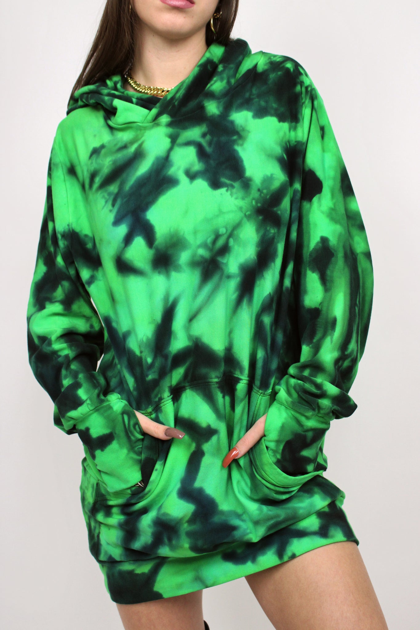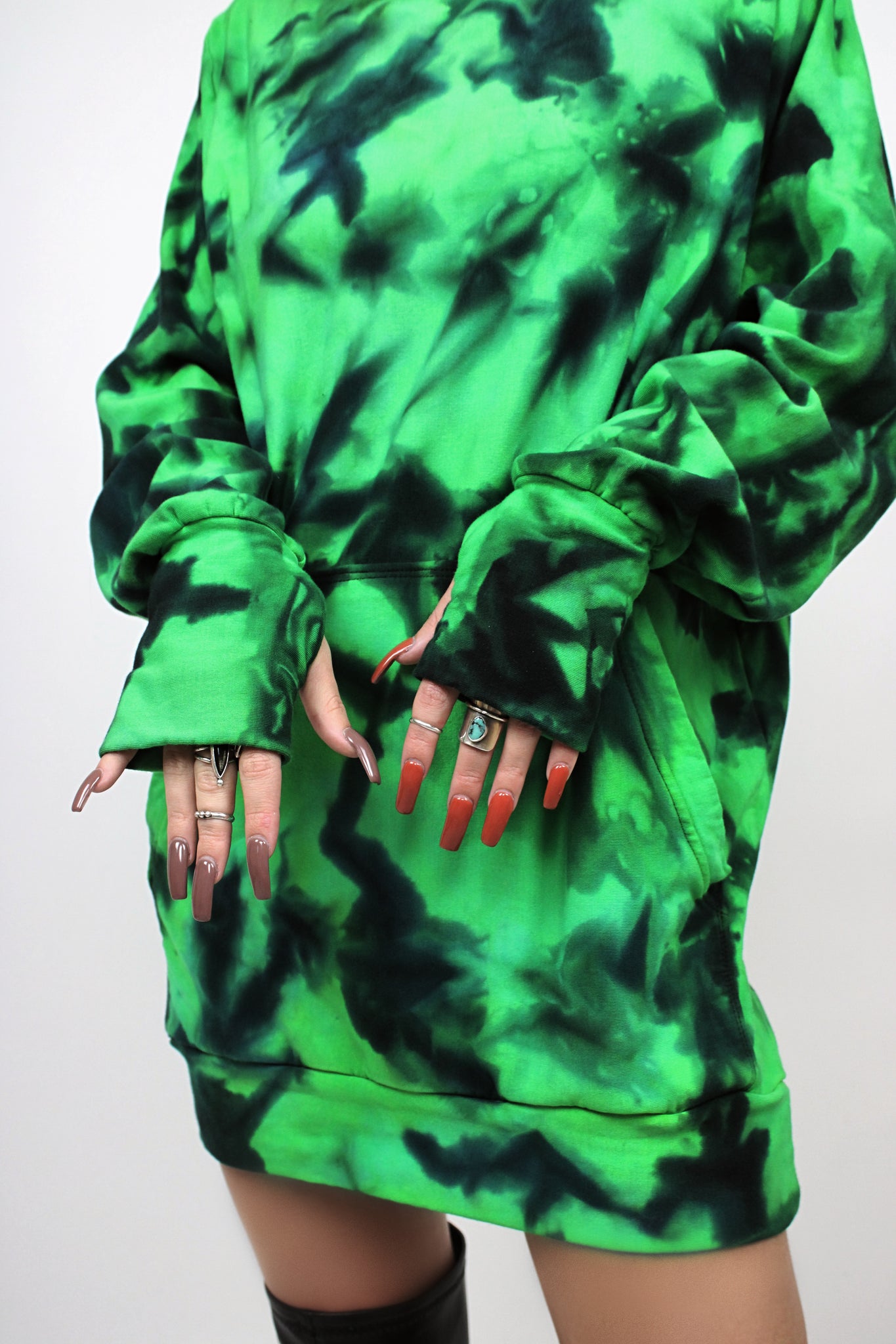 Made from bamboo fleece, the softest and coziest fabric we offer! This hoodie is designed to be worn long or with the bottom band folded up for a shorter look, both looks shown in photos.