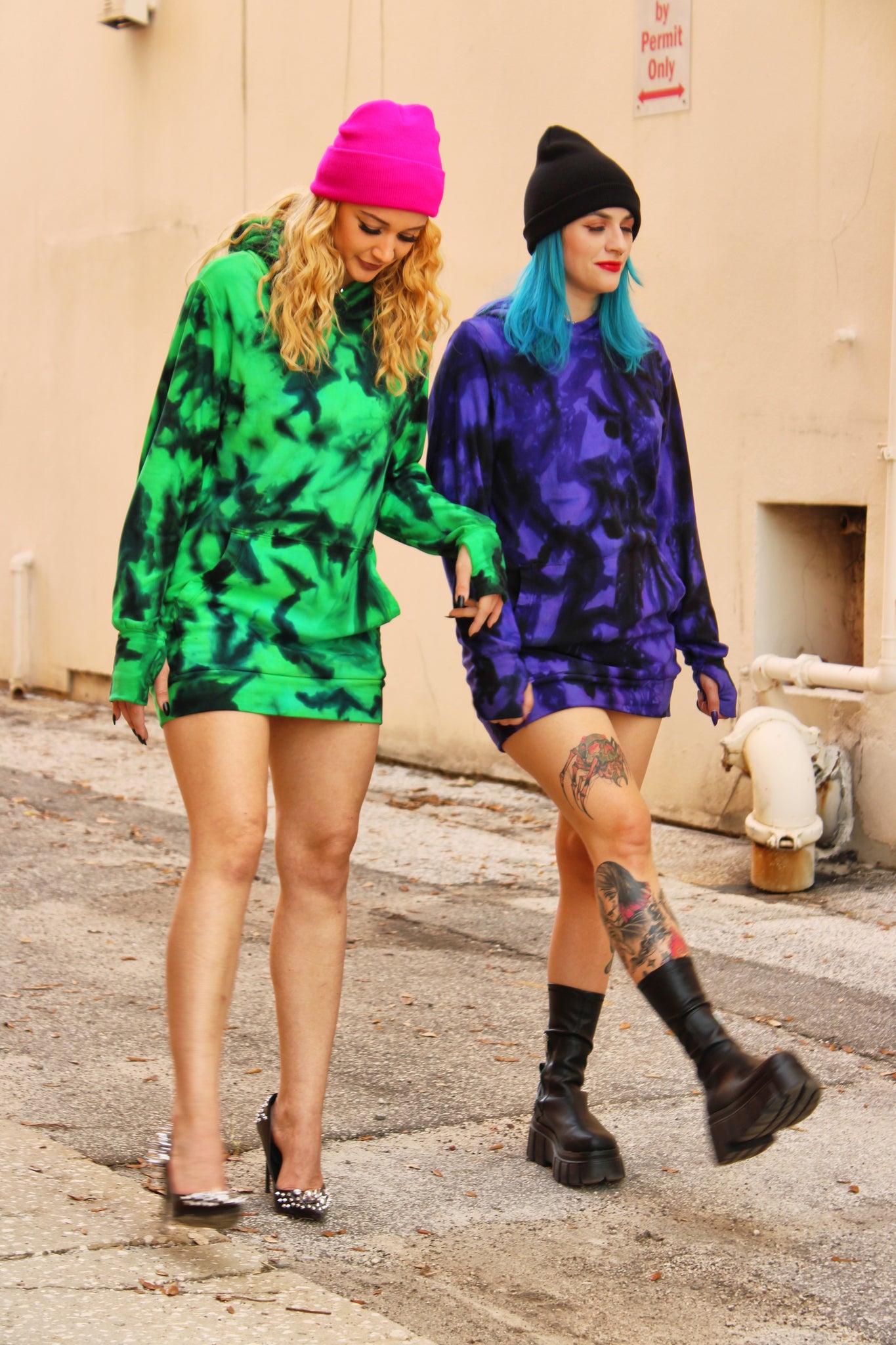 Both models are wearing size medium hoodie.