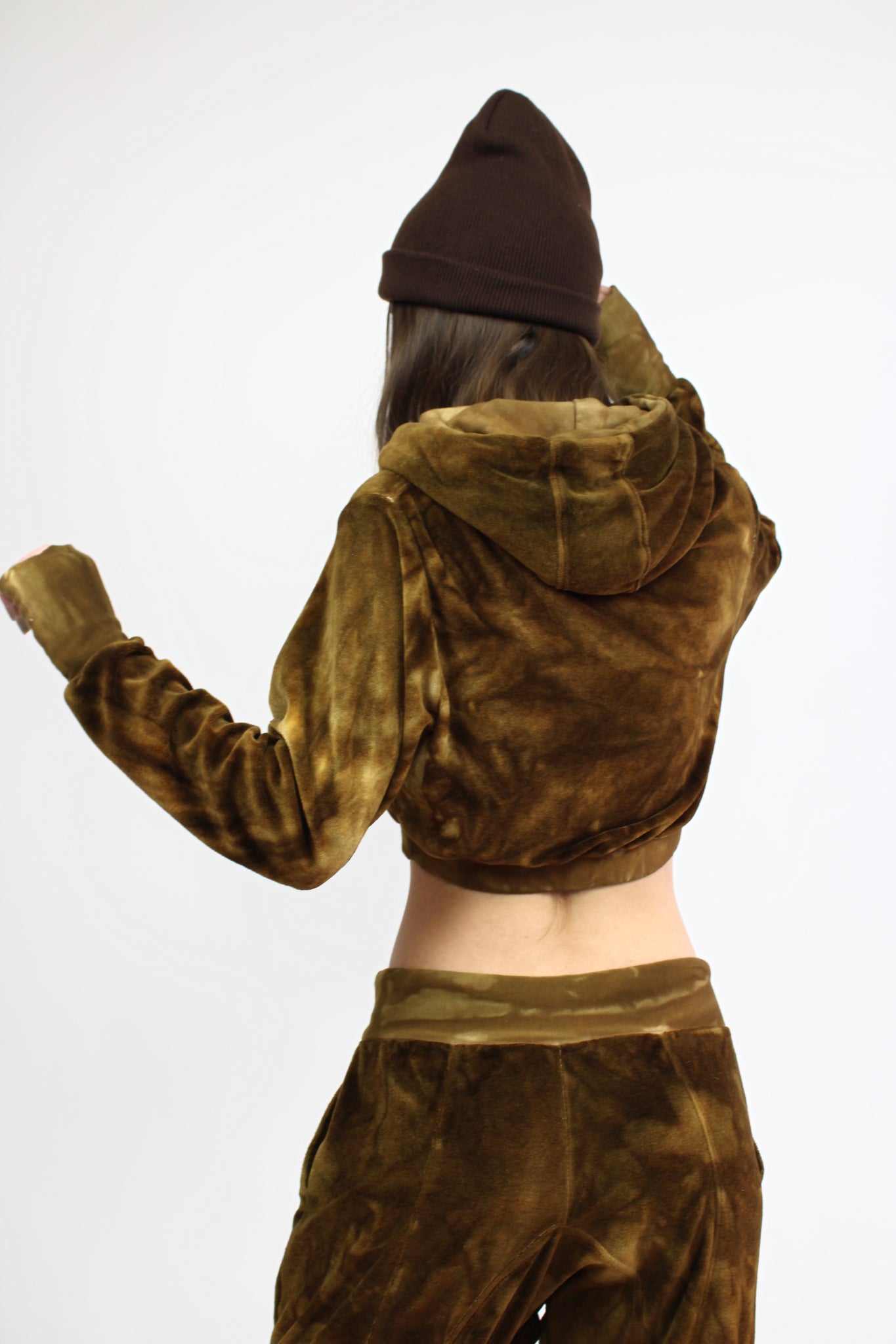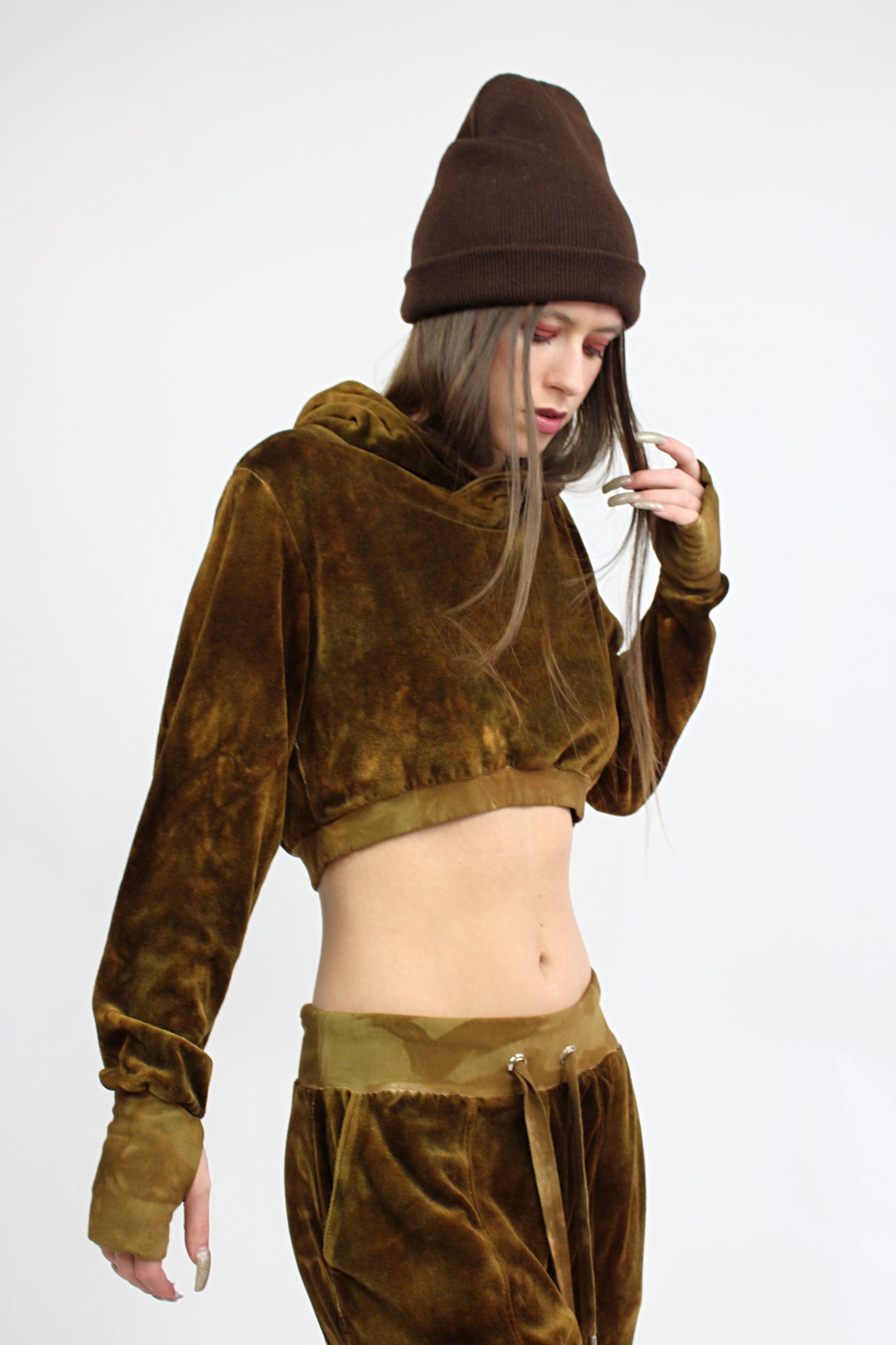 Velour Crop Mogul Hoodie in Nutmeg
