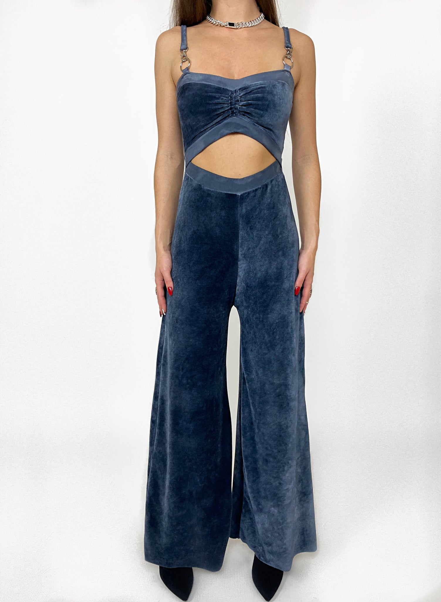 made from bamboo velour with French terry accents dyed in Gun Metal, in a stormy blue grey.