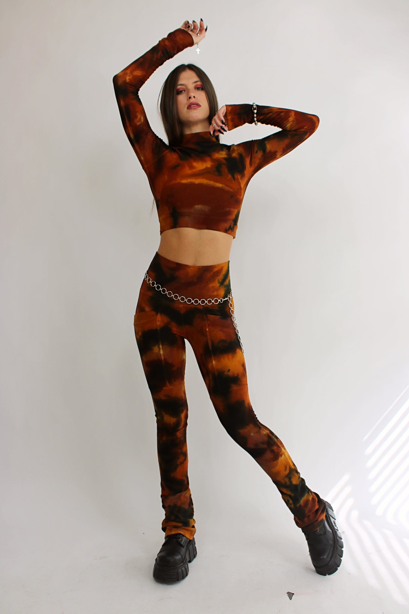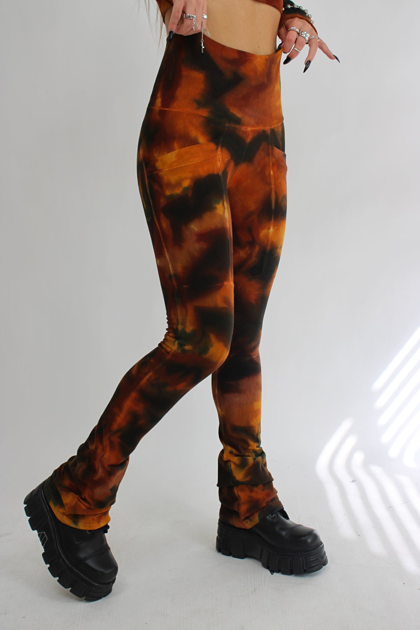 Each pair of legging is made from bamboo French terry and hand dyed individually, each will vary slightly since they are hand dyed but maintain the same color palette and tone.