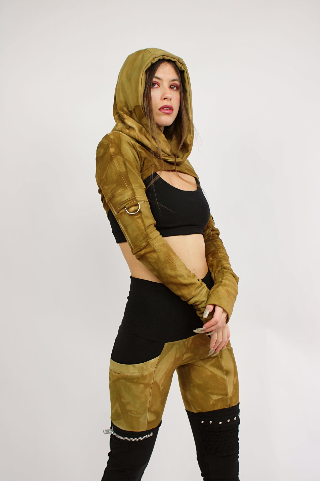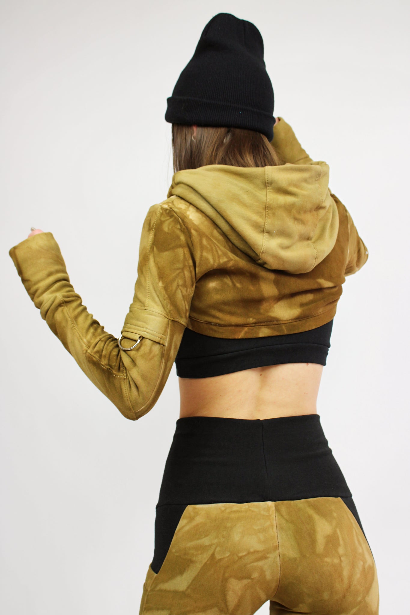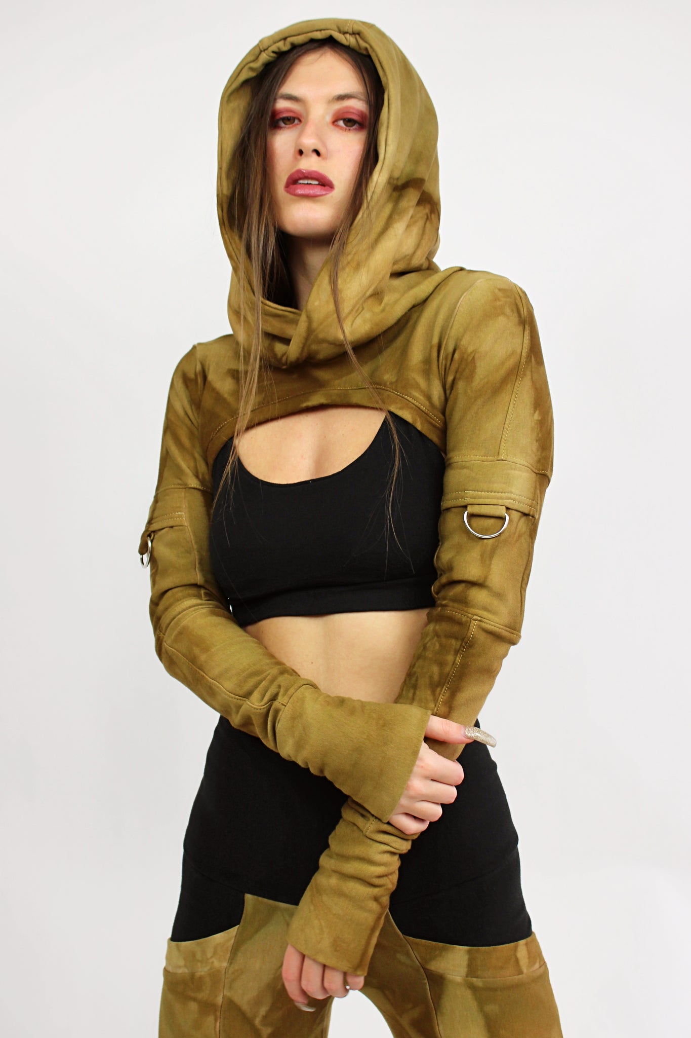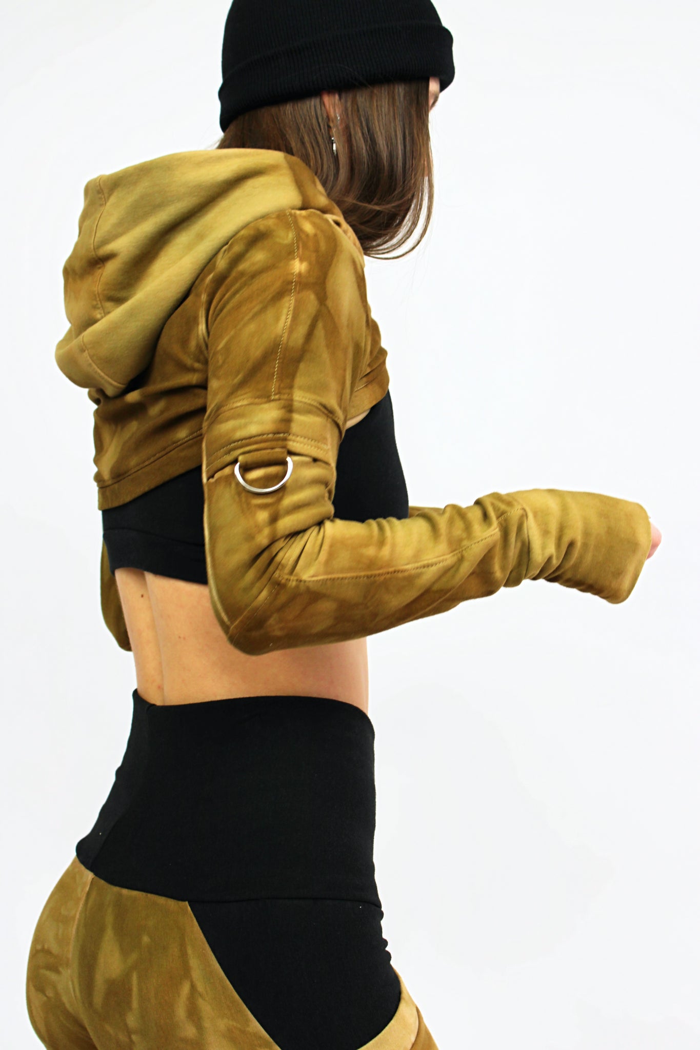 Upgrade your wardrobe with our stylish Hoodie Shrug in Black! This ultra-crop design features a versatile hood and utility pocket on the arms for added convenience. The detailed stitching adds a touch of sophistication to this casual piece. Stay comfortable and vibey with this must-have addition to your closet.